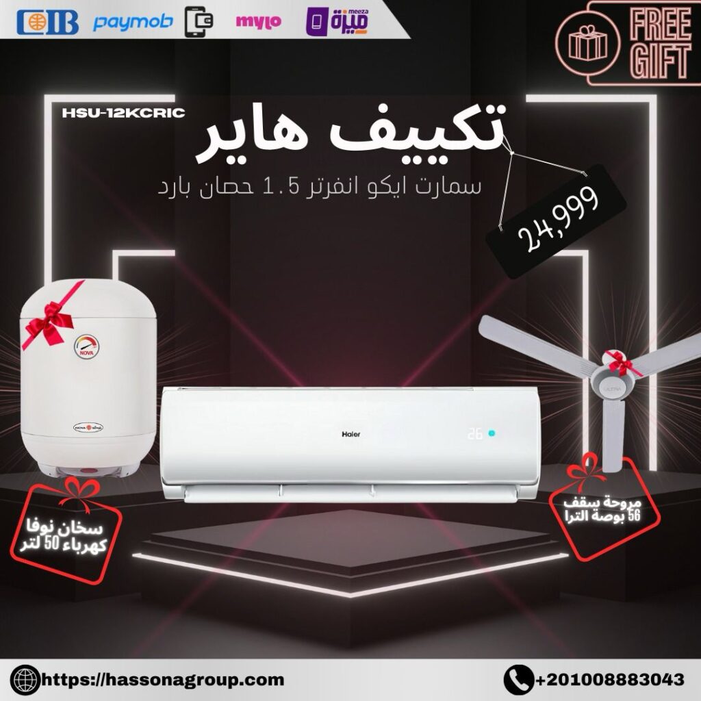 تكييف سبليت هاير، 1.5 حصان، بارد وسخن، موتور انفرتر، ابيض
