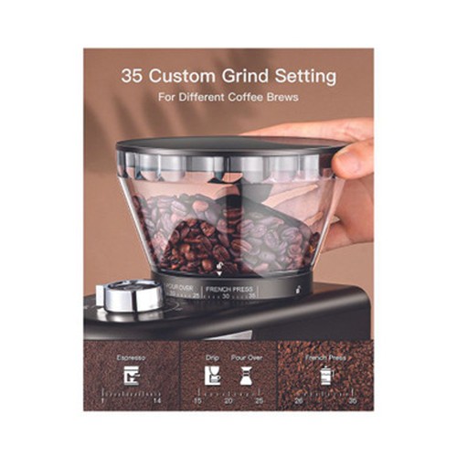 – طحن قابل للتخصيص: يوفر 35 إعدادًا قابلاً للتعديل من الإسبريسو الناعم إلى الخشن، مما يضمن لك الحصول على نكهة القهوة والقوة التي تريدها.